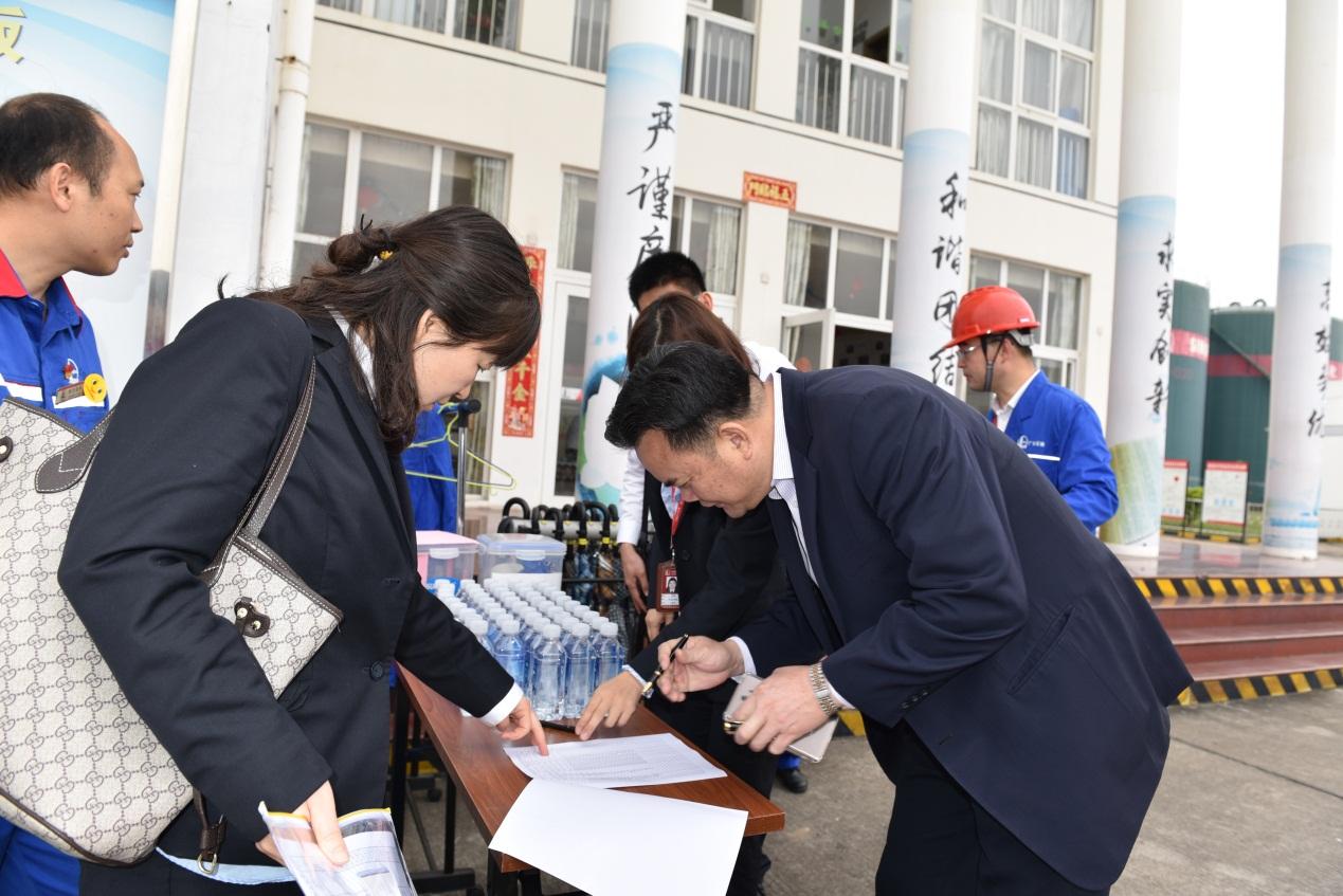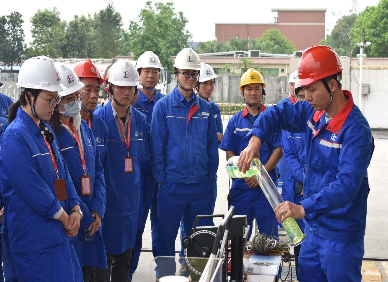 中国石化东莞分公司、寮步油库、油品配送车队、销售华南深圳输油管理处东莞站相关负责人分别介绍了对油品数量质量控制情况,中石化一贯注重质量管理和先进技术的应用,要求油库油品出库100%合格,确保“每一滴油都是承诺”。